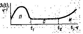 Для определения безотказности элементов справедливо равенство (2.1). При получении расчетных формул можно пользоваться как характеристикой безотказности, так и ее противоположной величиной - вероятностью отказа . В зависимости отконкретной задачи та или другая характеристика является более удобной. Иногда при получении расчетных формул, а также при оценке степени улучшения системы, приборов или элементов наиболее удобной характеристикой является величина, противоположная безотказности — вероятность отказа.