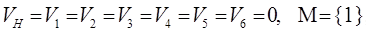 Итак, на первом проходе волнового алгоритма выполняется пункт 1, т.е. устанавливаются значения весов всех вершин в нуль, и помещает в массив М индекс начальной вершины, математически это можно записать так: