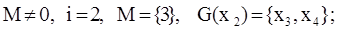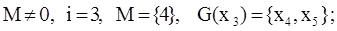 2. Если массив М пуст, выполняется п. 3, иначе выбирается с исключением из его очередная вершина X i и пересчитываются веса вершин, принадлежащих исходу G (X i ) вершины X i :