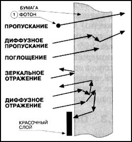 Юл і Нільсен, які вивчали цю залежність, пояснили отримане відхилення тим, що світло, яке падає на білі частини растрового елемента, не тільки відбивається ними, але і проходить у папір, розсіюється там, а деяка частина розсіяної складової поглинається фарбою растрових елементів (рис. 3).