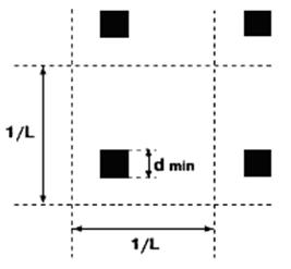 Якщо в основу вибору для "середньостатистичного" оригіналу покласти, наприклад, чотиривідсоткову растрову точку квадратної форми (рис. 5), то лініатура дорівнює зворотній величині п'яти її мінімальних розмірів