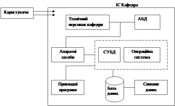 ІС “Кафедра” призначена для отримання інформації про фактичний рух студентських груп, співробітників кафедри у деякому вищому навчальному закладі.