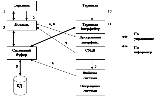 5.Перетворені дані СУБД пересилає з системного буферу у додатки і сігналізує про закінчення операції.