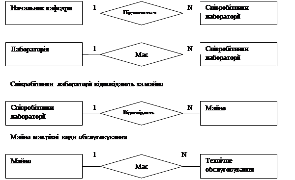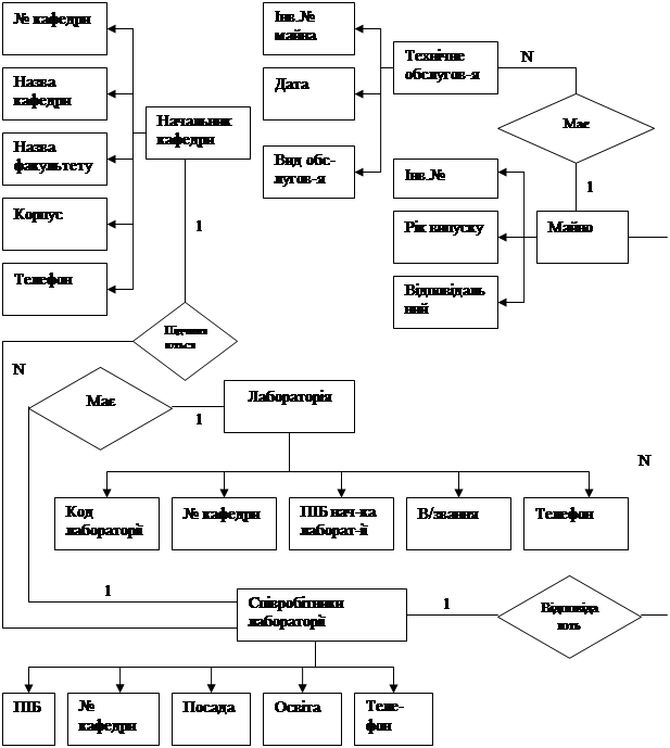 1. Інфологічну модель предметної області „Кафедра” в загальному проектному представленні на базі ER-моделі („сутність-зв’язок”).