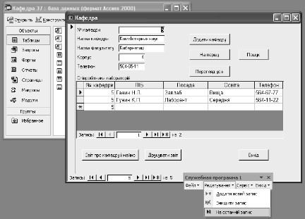 Курсовая работа: База даних "Кафедра" в Access з меню MDI