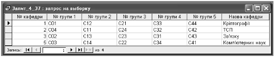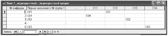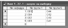 SELECT [Base 1].[№ кафедри], [Base 1].[№ групи 1], [Base 1].[№ групи 5]