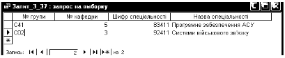 Запит з використанням внутрішнього підзапиту у режимі таблиці (рис.16):