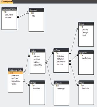 4. «LinkMonthNum» - код месяца сохраненного графика (числовой), является вторичным ключом поля «ID» таблицы «Месяцы»;