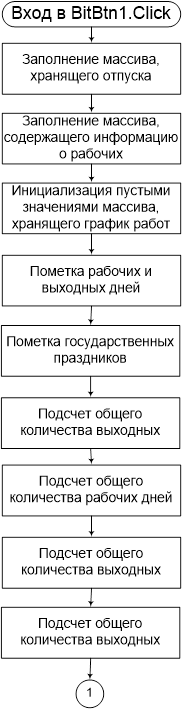 После апробирования данного приложения на предприятии можно судить о том, что в рамках курсовой работы мне удалось создать удовлетворяющую требованиям предприятия автоматическую генерацию графика учета рабочего времени, с возможностью хранения посредством Базы Данных