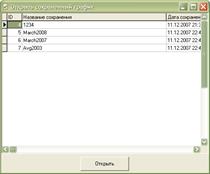 Команда «Открыть» вызывает окно выбора для загрузки названия и дата ранее сохраненных графиков, представленное на рисунке 7.2