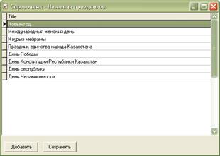 Команда «Справочник названий праздников», вызывает окно содержащее сведения о названия государственных праздников, предоставляющее возможность добавления или изменения данных о названии праздника. Окно представлено на Рисунке 7.8