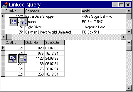 с помощью компонента TQuery произвести соединение данных из нескольких таблиц БД в один НД, после чего определить в отчете нужные группировки;