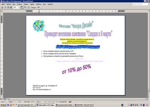 Были выполнены задания по составлению Web-страницы, базы данных в Адресной книге и построение, вычисление финансовых функций с помощью MSEXCEL.
