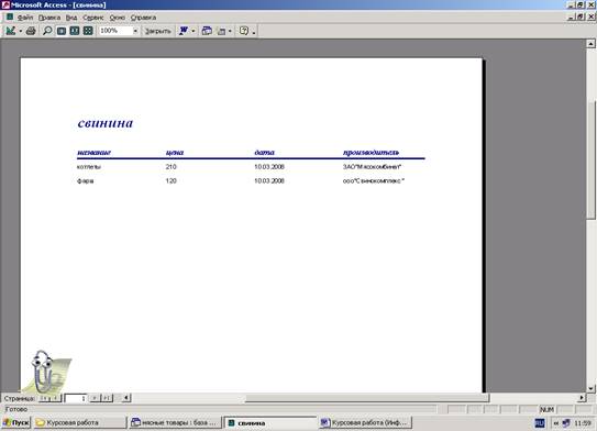 2.2.4 Создание и печать отчетов