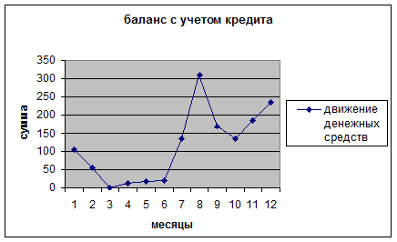 Как видно, кредит позволяет устранить дефицит наличия денежных средств на предприятии, это четко видно на графике №1, отражающем движения денежных средств.