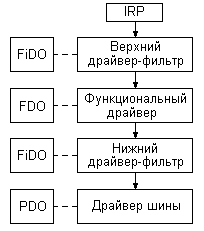 Драйверная модель WDM построена на организации и манипулировании слоями «Объектов физических устройств» и «Объектов функциональных устройств». Объект-устройство – это особая структура данных, создаваемая системой для взаимодействия программного и аппаратного обеспечения. Объект PDO создается для каждого найденного элемента аппаратуры, подключенного к шине данных. Объект FDO предлагает «олицетворение» каждой логической функции, которую видит в устройстве программное обеспечение верхних уровней.