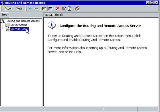 Проанализировав все варианты мы пришли к выводу что на сегодняшний день самый дешевый вариант настройки VPN сервера является операционная система Windows 2000 Server поэтому мы её выбрали. Для того чтобы начать настройку сервер VPN нужно запустить службу Маршрутизация и удаленный доступ. Для запуска службы Маршрутизация и удаленный доступ нам необходимо открыть оснастку Routing and Remote Access (RRAS) которая показана на рисунке, расположенном ниже: