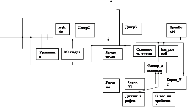 ж) спроектированы и подключены модули Норма_накопления, Прирост_предложения, Склонность_к_потреблению, Отнош_кап/труд, Норма_накоп-ления. Модули протестированы в составе пакета