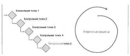 Модель процессов MSF описывает общую последовательность действий по созданию и развертыванию решений уровня предприятия. Модель достаточно гибка и адаптируется в соответствии с самыми различными требованиями в проектах самого разного масштаба. Модель процессов MSF ориентирована на этапы, и управление в ней организовано на основе контрольных точек, а итерационный подход применяется при разработке и развертывании традиционных прикладных программ, корпоративных решений электронной коммерции и распределенных прикладных Web-программ.