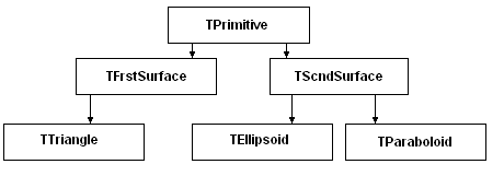 class TPrimitive – абстрактный класс примитива. От него наследуются поверхности первого и второго порядка.