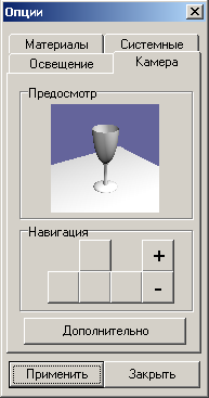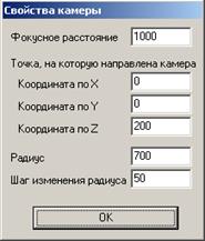 Шаг изменения радиуса – приращение радиуса камеры при однократном нажатии кнопки “–” на вкладке “Камера” формы “Опции” (или уменьшение при однократном нажатии кнопки “+”).