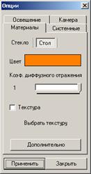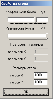 Выбрать текстуру – выбор файла изображения (*.bmp), который будет использоваться как текстура стола.