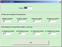 Таблица 1 - Исходные данные для анализа СМО