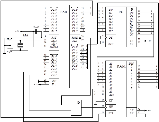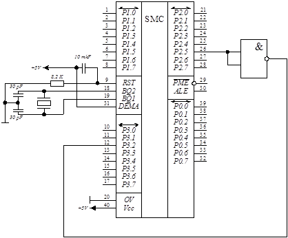 - сопряжение МК с внешней памятью программ.