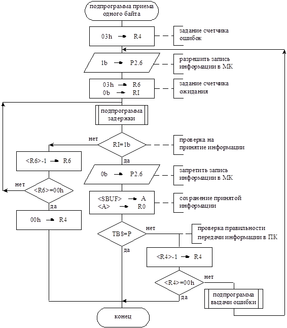 2.3.2.10 Подпрограмма приема одного байта информации. 41