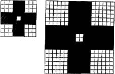 Устройство вывода для создания пиксела определенного физического размера использует столько своих минимальных элементов (лазерных точек – для лазерного принтера, видеопикселов – для монитора), сколько сможет. При масштабировании изображения количество входящих в него пикселов не меняется, а изменяется количество создаваемых устройством вывода элементов, идущих на построение отдельного пиксела изображения. На рис. 3 показан пример масштабирования растрового изображения – увеличения его в два раза по каждому измерению.
