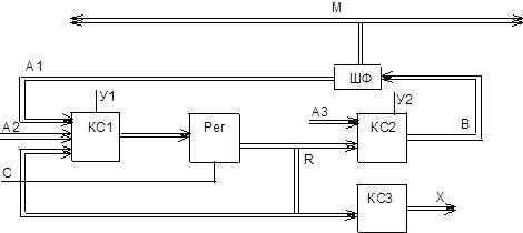 УА обычно представляется в виде регистровой структуры, то есть совокупности МФР со своими шинами, КС, предназначенными для формирования функций возбуждения триггеров и выходных сигналов ОА.