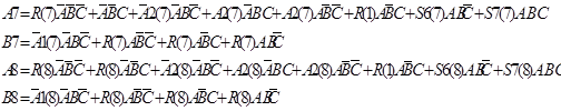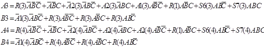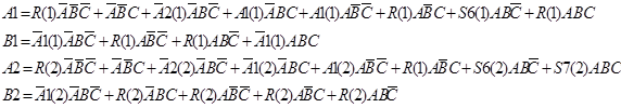 Таким образом МФР - это автомат с памятью, у которого входными, являются переменные А1 , А2 ,... Ак и множество МО Y, а выходными - В1 , В2 ,... Вs и Х. Для синтеза такого автомата проводят его декомпозицию, крайнем случаем которой является разбиение данного автомата на элементарные одноразрядные автоматы; при этом рассматривается n - автоматов с двумя состояниями.
