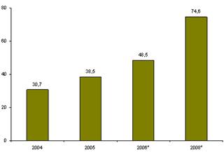 Рост российского рынка ИТ превысил в 2005 г. 20%, удивив тем самым аналитиков и обрадовав игроков. В самом деле, повод для радости пока есть — выручка от реализации высокотехнологичных продуктов и услуг стабильно растет, по мере роста и усложнения спроса на них. Однако фундамент для всеобщей эйфории «слегка жидковат». Если пару лет назад стало очевидно, что время «легких» денег заканчивается, сегодня вызывает опасения, как бы не закончилось «время денег» в ИТ-отрасли как таковое. Что вполне вероятно в ситуации, когда основным катализатором роста являются цены на нефть. Ввиду продолжительного отсутствия гаранта стабильности пора уже задумываться о факторах жизнестойкости в случае возможного оттока нефтедолларов, что по прогнозам экспертов вполне реально[http://cnews.ru/reviews/free/2005].