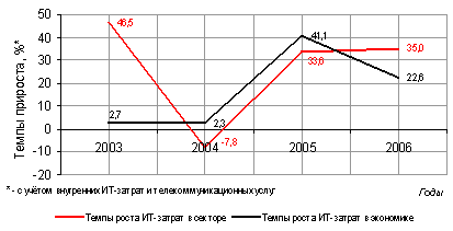 К наиболее быстро растущим в мире, а в последние годы и в России, необходимо отнести сектор информационных технологий и отдельные сегменты электронных медиа услуг, таких как платное ТВ и Интернет услуги.