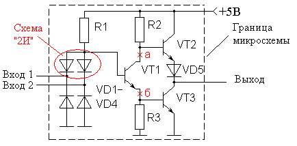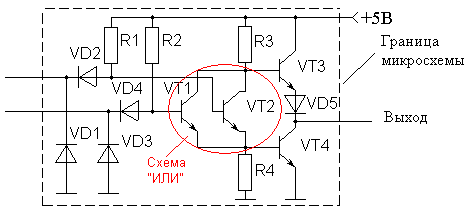2. ДТЛ, – диодно–транзисторная логика, в которой на входах стоит несколько диодов, реализующих функцию И или ИЛИ; выходной каскад на транзисторах;