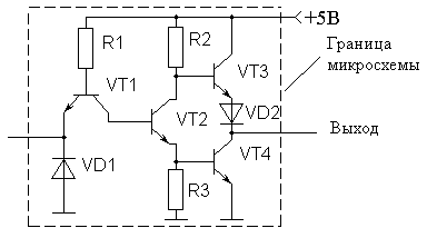 3. ТТЛ, – транзисторно–транзисторная логика, в логических элементах которой ко входам подключены эмиттеры многоэмиттерного транзистора; с помощью этого многоэмиттерного транзистора реализуется функция И; выходной каскад собран на транзисторах;
