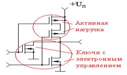 5. nМОП, pМОП, – МОП логика, все элементы которой выполнены на МОП транзисторах с проводимостью канала n–типа (n–МОП) или p–типа (p–МОП);