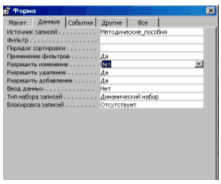 Форма – это объект, предназначенный для ввода и отображения данных в более удобном виде. Форма может содержать элементы управления и внедрённые объекты – рисунки, графики.