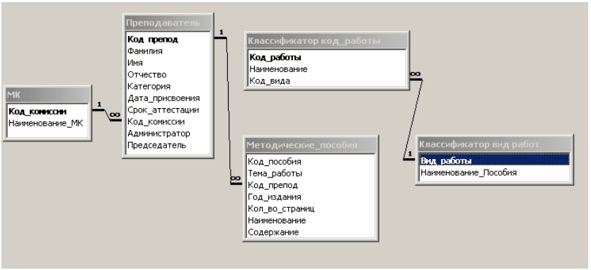 FROM Преподаватель INNER JOIN ([Классификатор вид работ] INNER JOIN ([Классификатор код_работы] INNER JOIN Методические_пособия ON [Классификатор код_работы].Код_работы = Методические_пособия.Наименование) ON [Классификатор вид работ].Вид_работы = [Классификатор код_работы].Код_вида) ON Преподаватель.[Код препод] = Методические_пособия.Код_препод;