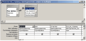 SELECT Преподаватель.Фамилия, Преподаватель.Имя, Преподаватель.Отчество, Sum(Методические_пособия.Кол_во_страниц) AS [Sum-Кол_во_страниц]