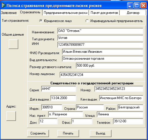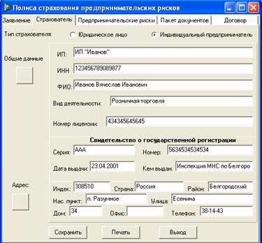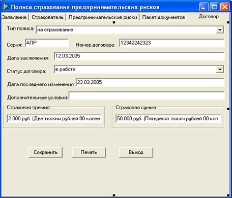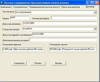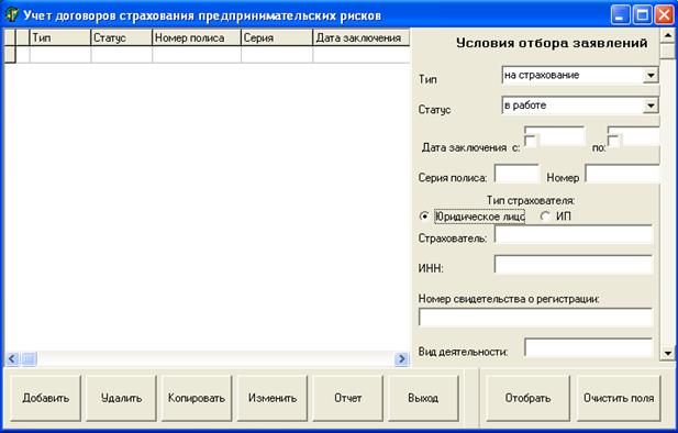 Дипломная работа: Автоматизированная система учета договоров страхования предпринимательских рисков