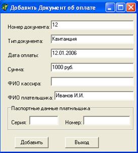 По кнопке "Выход" происходит выход из окна и возврат в окно "Документы об оплате" (рис. 28).