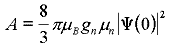 |ψ(0)|2 - густина імовірності хвильової функції електрона, визначена поблизу ядра, а νА резонансна частота. Резонансна частота залежить як від енергії надтонкої взаємодії, так і від величини магнітного поля.