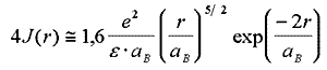 Зміна обмінної частоти від відстані між донорами, розрахована для кремнію, зображена на рис.2.3. Останнє рівняння справедливе для атомів водню. В кремнію ситуація ускладнюється через вироджену анізотропну структуру його долин. Обмінні члени від кожної долини інтерферують, що приводить до осцилюючої залежності J(r). У цій роботі складності, зв’язані з зонною структурою кремнію, не враховуються.