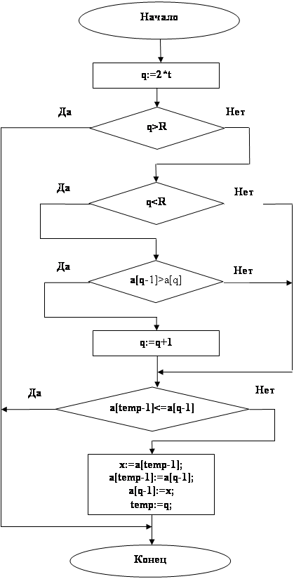 Дерево, изображенное на рисунке 2, представляет собой пирамиду, поскольку для каждого i = 1, 2, ..., R/2 выполняется условие (1). Очевидно, последовательность элементов с индексами i = R/2+1, R/2+2, ...., R (листьев двоичного дерева), является пирамидой, поскольку для этих индексов в пирамиде нет сыновей.