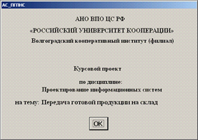 После запуска файла АС_УПГПНС.mdbпользователю будет представлена заставка АС_УПГПНС (Приложение А Рисунок 2).