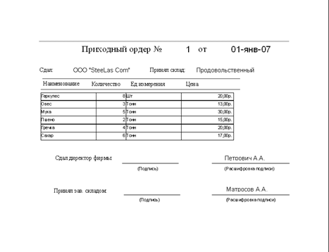 г) просмотр и печать отчёта о приходном ордере (Приложение А Рисунок 7).