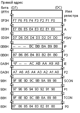 [1] Специфические для 8051 типы данных sfr и bit отличаются от стандартных типов данных языка Си, т.к. размещаются в особых областях памяти.
