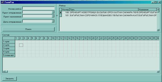 При выборе команды «Рейсы» на экране появляется новое окно, отображённое на рисунке 9.