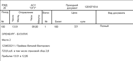 Рисунок 6 – Проездной документ